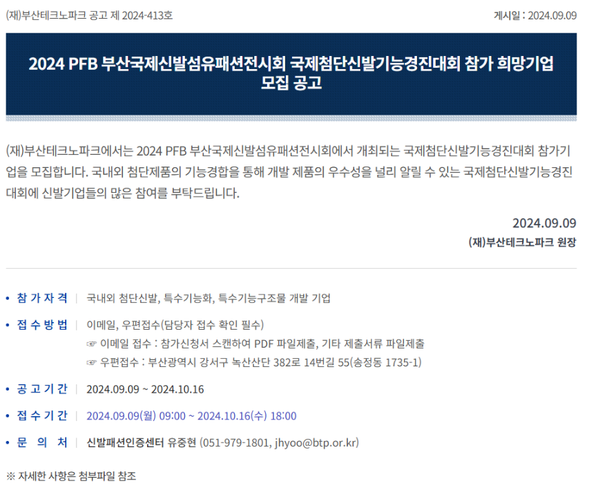 [공고] 2024 PFB 부산국제신발섬유패션전시회 국제첨단신발 기능경진대회 참가 희망기업 모집