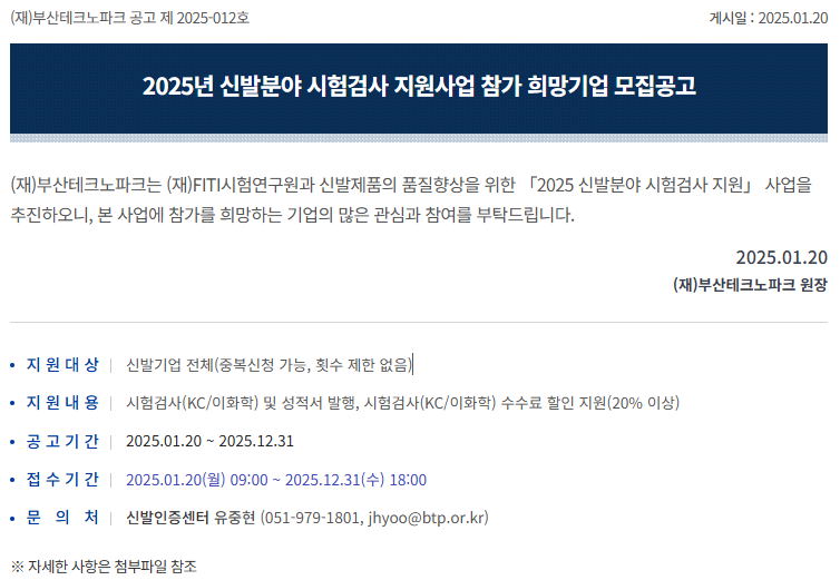 [공고] 2025년 신발분야 시험검사 지원사업 참가 희망기업 모집공고